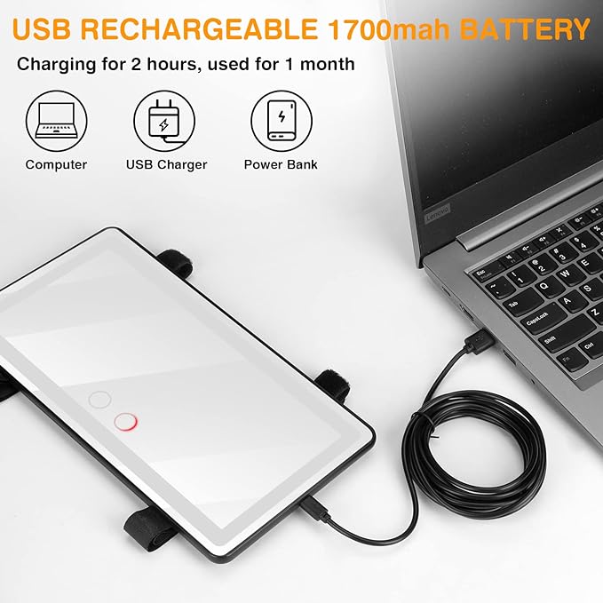 💡 Versatile Charging: you can charge your mirror using your car, a socket, computer, or mobile power bank—ensuring you can use it anytime, anywhere.