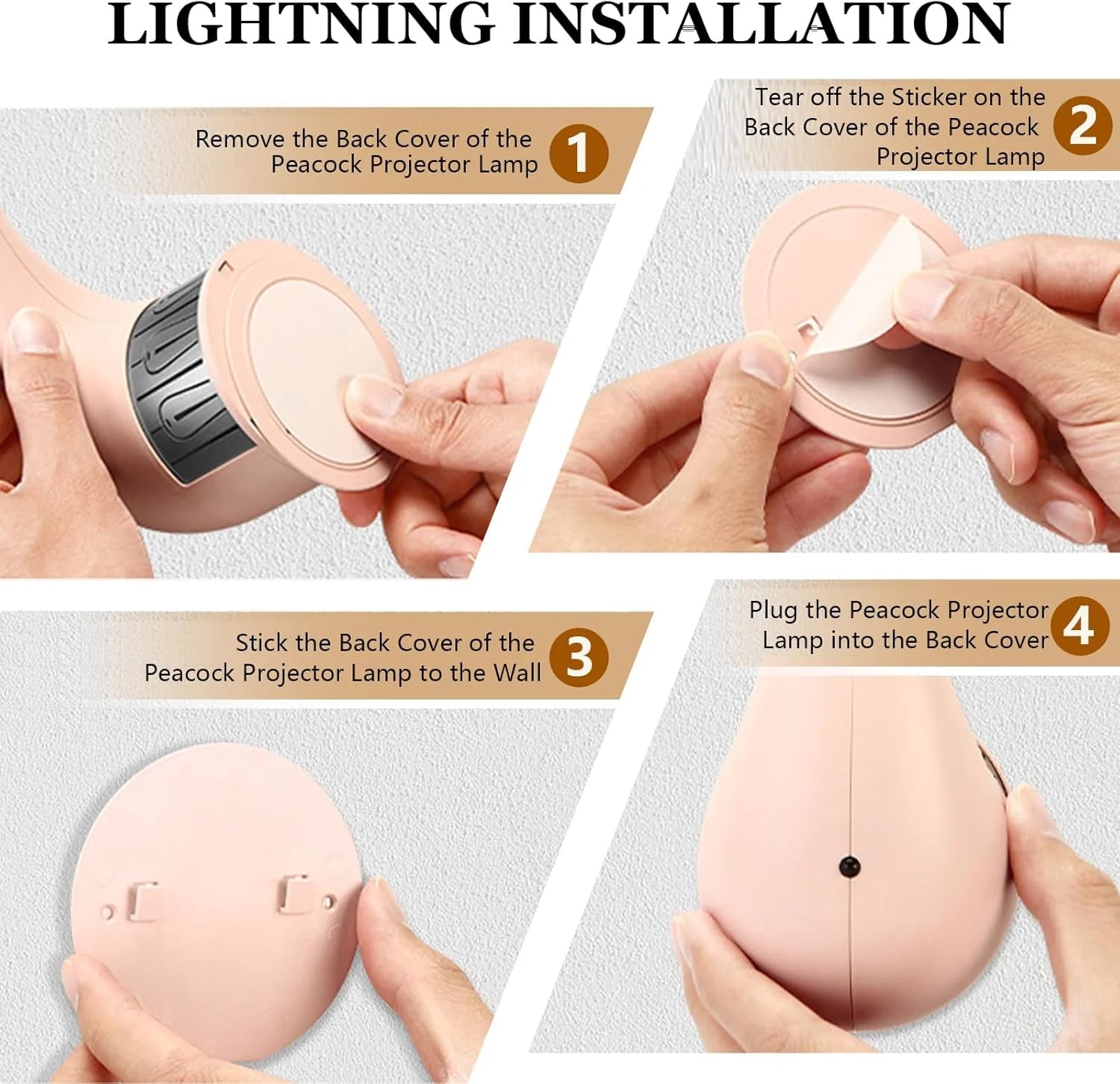Light up your room with elegance using the LED Peafowl Peacock Projection Wall Lamp. This decorative night lamp beautifully projects a vivid peacock-inspired light pattern on your walls, turning any plain space into a visually stunning and relaxing environment.